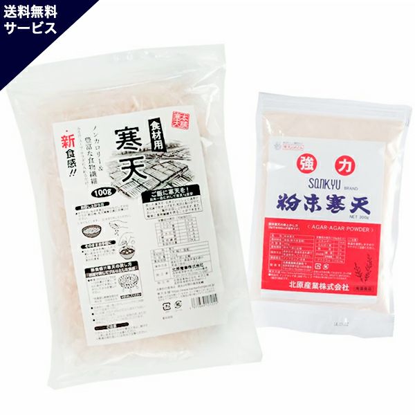 他の画像を見る お試しセット(粉寒天300g 、食材用100g、計量スプーン、簡単レシピ) ¥ 3,912 税込 粉寒天は寒天ゼリーなどに、糸寒天はサラダや汁物に。 手軽なサイズをセットにしました。 寒天初心者様でも使い切れるちょうどいいサイズです! 商品詳細へ > お気に入りに登録する